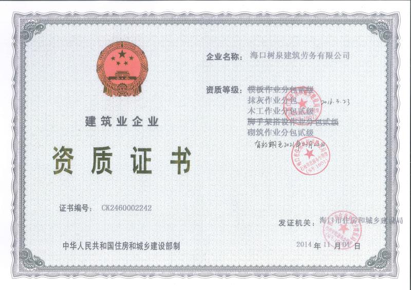??跇淙ㄖ趧?wù)有限公司成立于2011年,公司位于???,其前身是一家專業(yè)建筑施工隊,自2004年即開始在海南從事建筑勞務(wù)施工。自成立至今,公司已經(jīng)擁有一支科學管理、質(zhì)量過硬、能打硬仗,搶工期的專業(yè)隊伍。能獨立承擔大中型工業(yè)與民用建筑 、室內(nèi)外裝修、各類機電設(shè)備安裝工程。代表工程有??跒I海華庭、三亞時代海岸T01/02/04/05棟高層、合肥東海花園二期、陵水富力灣B區(qū)高層、三亞金中海(酒店)、瓊海大印經(jīng)典花園、??诃h(huán)球海景大酒店(四星級酒店,在建中)、陵水珍珠大廈(五星酒店)、??谌f達廣場、美蘭機場二期。